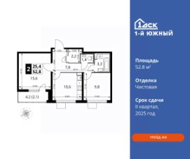 Максимальные скидки при 100% оплате.Trade-in вместо первоначального взноса - выгодно обменяйте вашу квартиру на новую!Корпус сдан! Прямая продажа от застройщика! Жилой Комплекс класса Комфорт плюс.Продаётся 2-к квартира номер 276 в сданном корпусе общей площадью 52.8 кв.м на 13-м этаже 25 этажного дома.Особенности:- Квартира доступна к покупке в Trade-In.- Просторная спальня, в которой можно разместить большую кровать.- Линейная планировка - максимальная функциональность и удобство.- Раздельный санузел- Гостевой санузел - комфорт и удобство для ваших гостей.- Просторная мягкая зона - комфорт и уют для отдыха всей семьи.- Возможность добавить спальное место - дополнительный комфорт для гостей.- Ограниченное количество квартир на этаже - комфорт и уют без лишней суеты.- Гардеробная - удобство для хранения и организации вещей.- Просторная лоджия - идеальное место для уютных вечеров.- Вид из окна: двор- МЦД5 в пешей доступности- Квартал с южным садом- Свои 3 детских сада и 2 большие школыРасположение комплекса: Одно из преимуществ проектов 1- ДСК - большие застекленные лоджии. Другое преимущество - честный евро-формат. Во всем проекте предусмотрена система ''Умный дом''. В состав устанавливаемого пакета устройств входит: WiFi реле для управления группами потребителей, беспроводной кран перекрытия с эл. приводом, беспроводной сенсор протечки, Яндекс Станция Мини.Его расположение можно назвать удачным за счет транспортной доступности и близости к природным объектам. По соседству лес, а в каждом дворе плодовые деревья. Весной квартал окутывает бело-розовое облако: это цветут яблони, груши, сливы. К августу в воздух наполняется ароматом созревших плодов. Зимой среди покрытых инеем деревьев протянулась лыжня.Транспортная доступность:- Общественный транспорт: Действующая ж/д станция Булатниково (в перспективе будущая МДЦ D5) в пешей доступности, всего 10-12 минут.- Личный автотранспорт:Удобный выезд на трассу М4-Дон в сторону Москвы и области - 850 м, до МКАД - 1 кмВнутренняя инфраструктура:Красивые продуманные подъезды - еще одно преимущество проекта 1-й Южный. Вход в сквозные подъезды есть и с улицы, и со двора. Благодаря сплошному остеклению в них всегда светло и уютно. Подъезды расположены на уровне земли, поэтому и молодым родителям с коляской, и жильцам с ограниченными возможностями вход и выход неудобств не доставят.В помещении предусмотрено место под стойку ресепшен с выводом инженерных сетей. Если жильцы решат на общем собрании, что необходим охранник или консьерж, организовать для них рабочее место можно быстро и с минимальными затратами. В подъездах предусмотрены уборные для детей и взрослых. Колясочные в каждом подъезде позволяют поддерживать порядок и чистоту на этажах. На случай прогулки с четвероногим питомцем в непогоду в подъездах устроены лапомойки. Во дворах и на общественных территориях 1-ого Южного столько всего интересного для юных обитателей. Собственные 3 детских сада и 2 больших школы буквально ''под