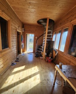 Продаю дом из бревна, 109 кв.м на участке 15 соток : сруб 6х9 и пристройка 2,5х9, 2016 года постройки. Расположен в охраняемом коттеджном поселке. СНТ Денисьево, уч. 67На первом этаже 2 комнаты по 20 кв. м и пристройка. На втором этаже 3 спальни (10, 10 и 12кв.м) и балкон, в проекте.Проведено и разведено по дому электричество 10 квт (можно увеличить до 15), зимний водопровод от колодца 12 колец, переливной септик на 4+3 кольца. Вода питьевая, вкусная.Пристройка готова к отделке панелями или др. материалом. В пристройке душ, раковина, разводка под туалет и стир. машину, нагреватель для воды и накопительный бак на 100 литров.Окна REHAU с двойными стеклопакетами и энергосберегающими стеклами, входная дверь финская, все очень качественно утеплено. Дом полностью пробит льноватином. Инфракрасные обогреватели с терморегуляторами.На участке также грядки, 3 куста смородины, 2 вишни и яблоня, малина, теплица 6х3, летний туалет+отделение для садового инвентаря, компостная куча, мангал, растут березы и др. деревья. Участок огорожен профлистом, ворота с калиткой, со второго этажа и крыльца шикарный вид на поле и лес.Фундамент свайный, дом окрашен в 2 слоя тиккурилой. В доме пахнет деревом, замечательно спится, уютно. Все делалось очень качественно, для себя. Соседи спокойные, отношения хорошие. Живу в тут с апреля по ноябрь, есть все необходимое для проживания. На фото все в начальном состоянии, чтобы можно было оценить масштабы. Если заинтересует, могу выслать фото нынешней обстановки, но это временный вариант. 80 км от мкад, от станции Шаликово (Белорусское направление) 45 мин пешком, до Можайска 10 км. Поблизости продуктовый магазин, пруд, в лесу грибы и ягоды.1 собственник.