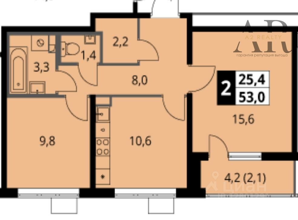 Предлагаем вашему вниманию просторную 2-комнатную квартиру площадью 53 кв.м, расположенную на 15 этаже современного 24-этажного дома в ЖК ''Первый Южный''.