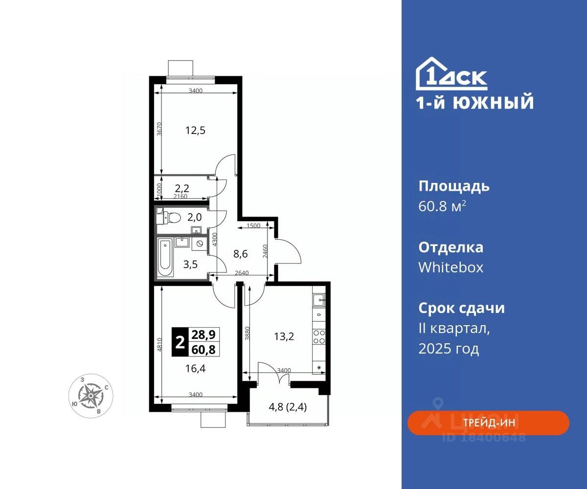 Особенности: - Квартира доступна к покупке в Trade-In. - Просторная спальня, в которой можно разместить большую кровать. - Угловая планировка - больше пространства для ваших идей. - Раздельный санузел - Гостевой санузел - комфорт и удобство для ваших гостей. - Просторная мягкая зона - комфорт и уют для отдыха всей семьи. - Возможность добавить спальное место - дополнительный комфорт для гостей. - Просторная кухня - место для семейных ужинов и кулинарных экспериментов. - Стандартное количество квартир на этаже - оптимальный выбор для городской жизни. - Гардеробная - удобство для хранения и организации вещей. - Ниша под шкаф - компактное и удобное место для вещей. - Просторная лоджия - идеальное место для уютных вечеров. - Вид из окна: двор - МЦД5 в пешей доступности - Квартал с южным садом - Свои 3 детских сада и 2 большие школы