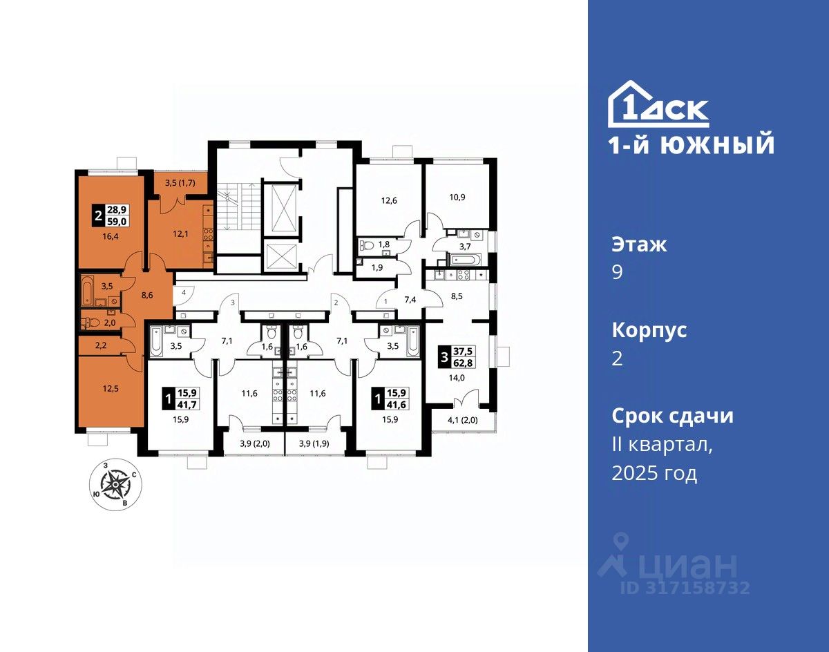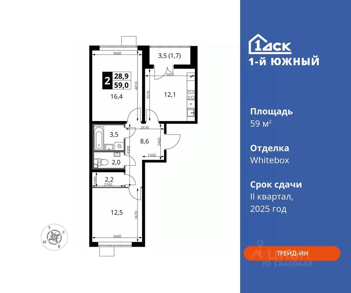 Максимальные скидки при 100% оплате. Trade-in вместо первоначального взноса - выгодно обменяйте вашу квартиру на новую! Корпус сдан! Прямая продажа от застройщика! Жилой Комплекс класса Комфорт плюс. Продаётся 2-к квартира номер 694 в сданном корпусе общей площадью 59 кв.м на 9-м этаже 25 этажного дома.