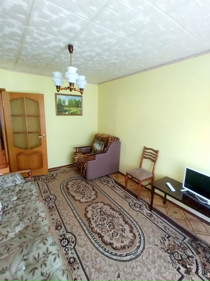 Косметический ремонт. В комнатах диван двуспальный, кровать, кресло-кровать, ТВ. На кухне гарнитур, холодильник, стиральная машина и прочее.
