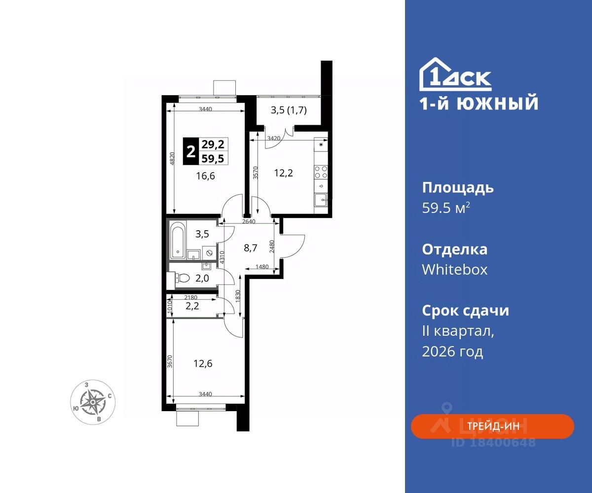 Максимальные скидки при 100% оплате. Trade-in вместо первоначального взноса - выгодно обменяйте вашу квартиру на новую! Прямая продажа от застройщика! Жилой Комплекс класса Комфорт плюс. Продаётся 2-к квартира номер 762 общей площадью 59.5 кв.м на 15-м этаже 24 этажного дома. Отделка Whitebox.