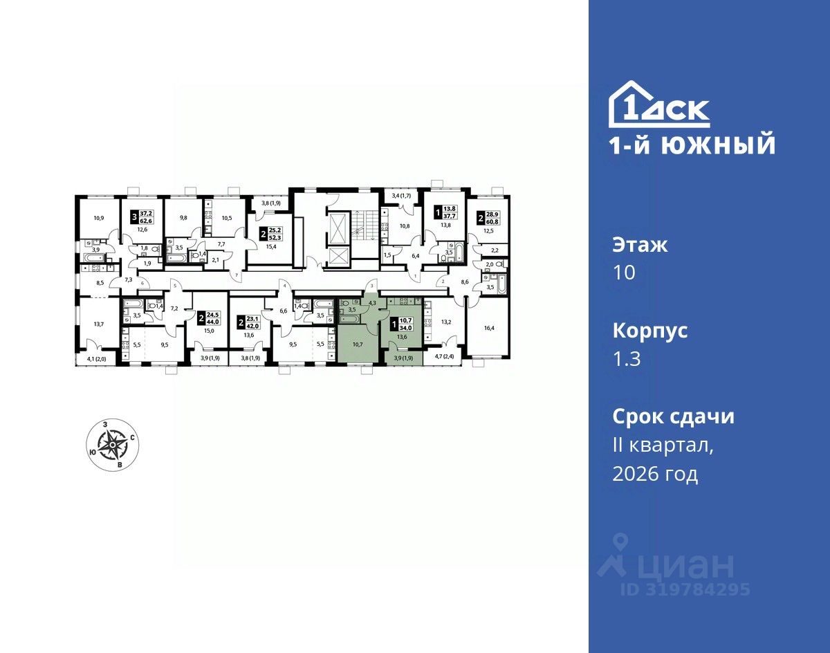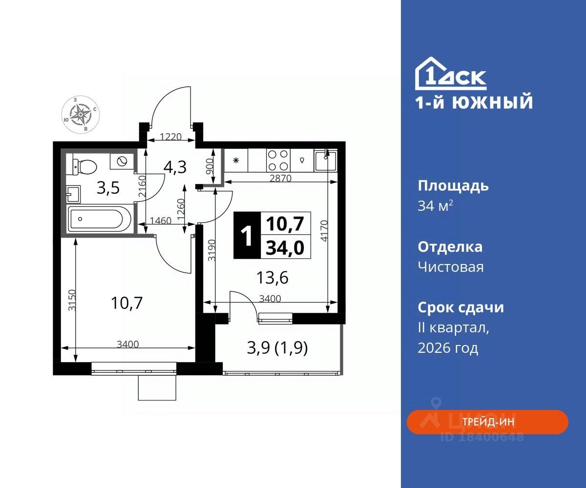 продам 1-к, Первый Южный ЖК, 1.310 460 032 ₽