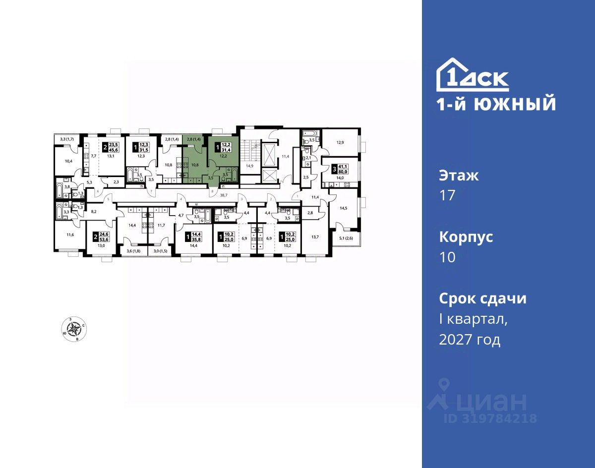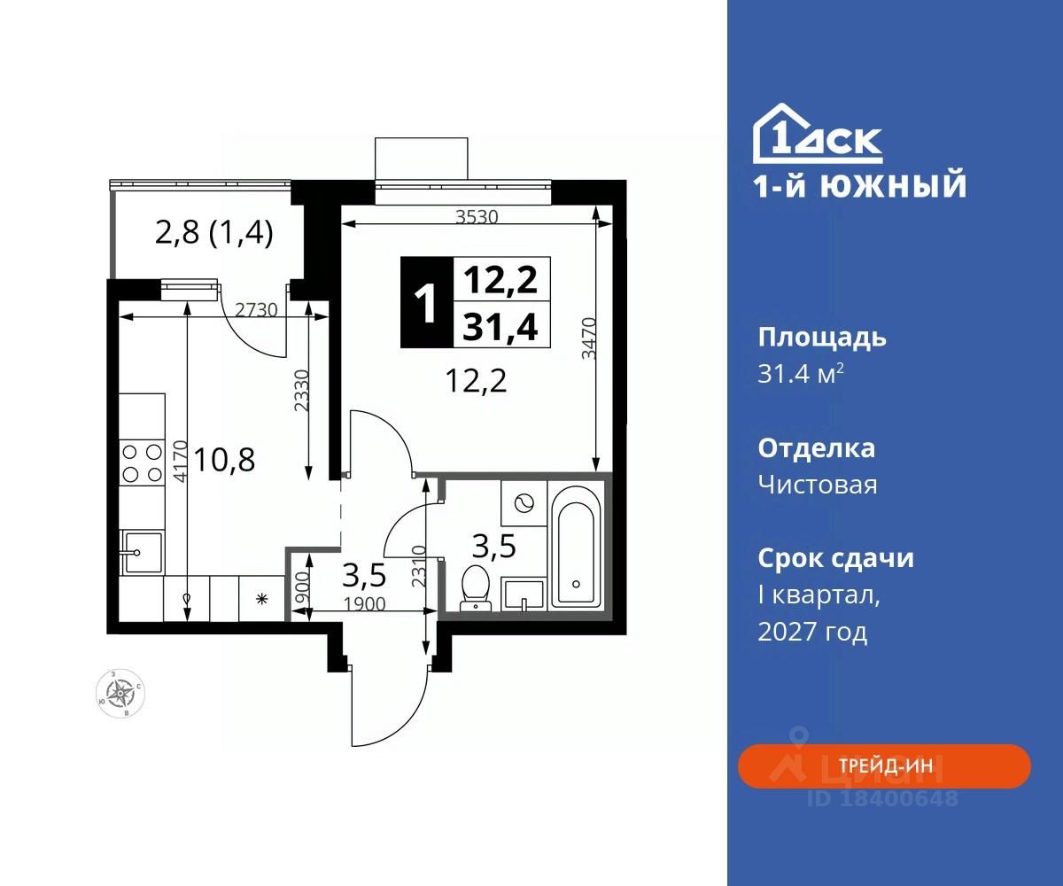 Максимальные скидки при 100% оплате. Trade-in вместо первоначального взноса - выгодно обменяйте вашу квартиру на новую! Прямая продажа от застройщика! Жилой Комплекс класса Комфорт плюс. Продаётся 1-к квартира номер 220 общей площадью 31.4 кв.м на 17-м этаже 24 этажного дома. Чистовая отделка.