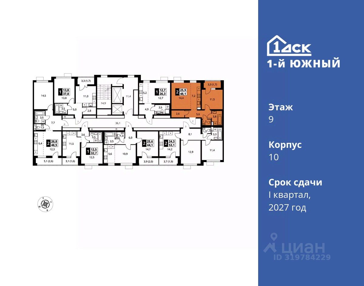 Максимальные скидки при 100% оплате. Trade-in вместо первоначального взноса - выгодно обменяйте вашу квартиру на новую! Прямая продажа от застройщика! Жилой Комплекс класса Комфорт плюс. Продаётся 2-к квартира номер 580 общей площадью 48.1 кв.м на 9-м этаже 24 этажного дома. Отделка Whitebox.