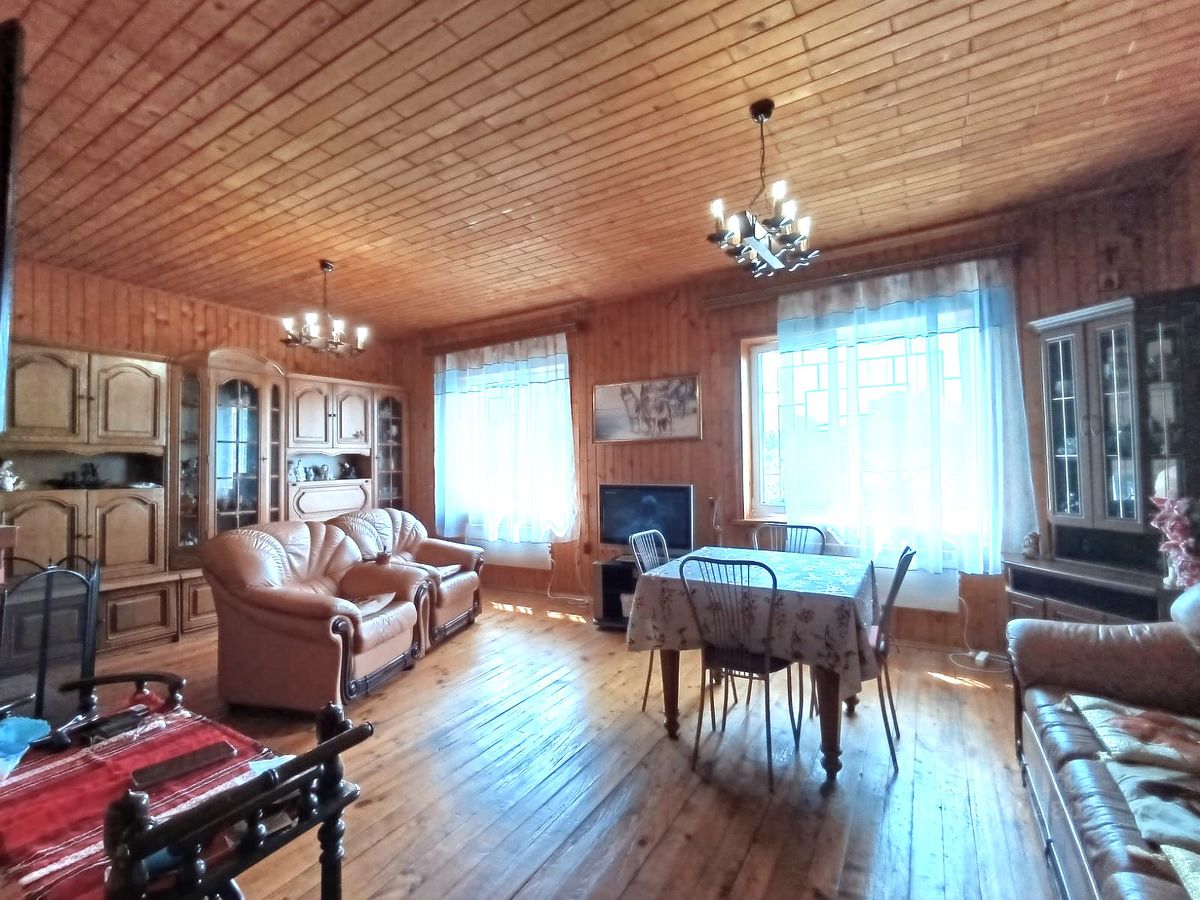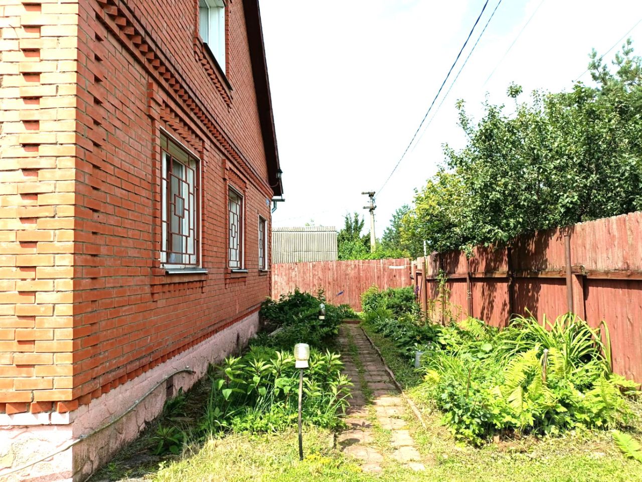 Дом двухэтажный с мансардным этажом. Площадь 150 кв.м. Построен из бревна, обложен кирпичем.