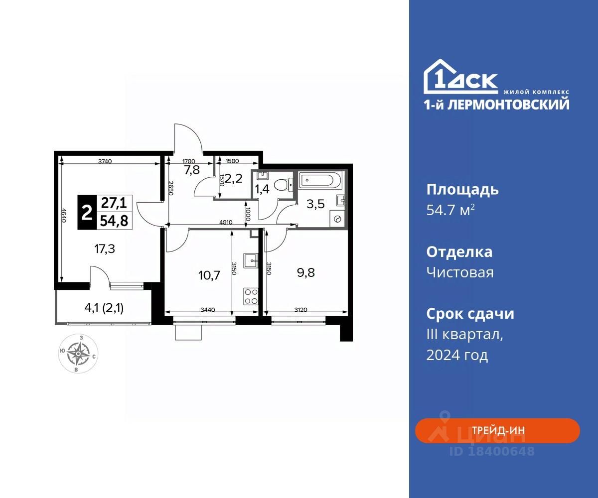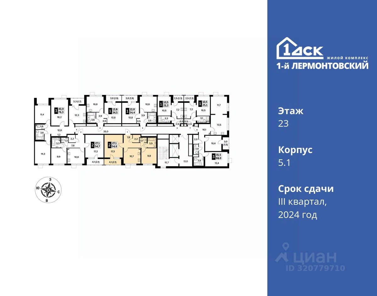 Максимальные скидки при 100% оплате. Корпус сдан! Прямая продажа от застройщика! Жилой Комплекс класса Комфорт плюс. Продаётся 2-к квартира номер 330 в сданном корпусе общей площадью 54.7 кв.м на 23-м этаже 24 этажного дома.