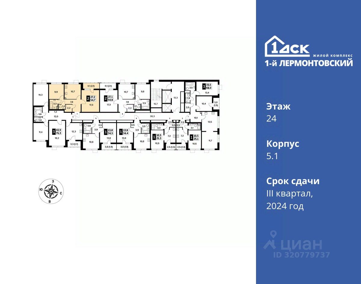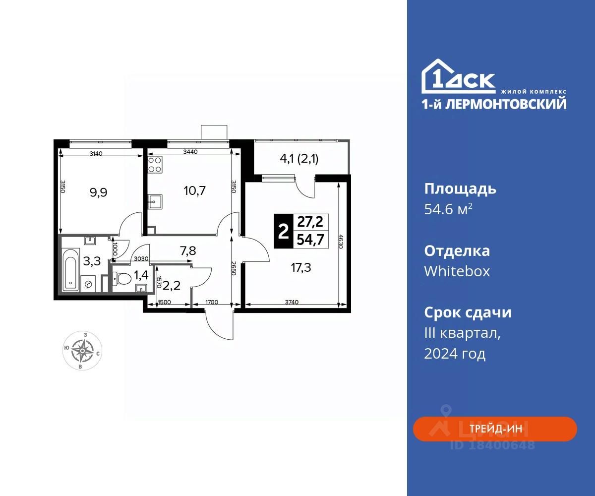 Максимальные скидки при 100% оплате. Корпус сдан! Прямая продажа от застройщика! Жилой Комплекс класса Комфорт плюс. Продаётся 2-к квартира номер 804 в сданном корпусе общей площадью 54.6 кв.м на 24-м этаже 25 этажного дома.