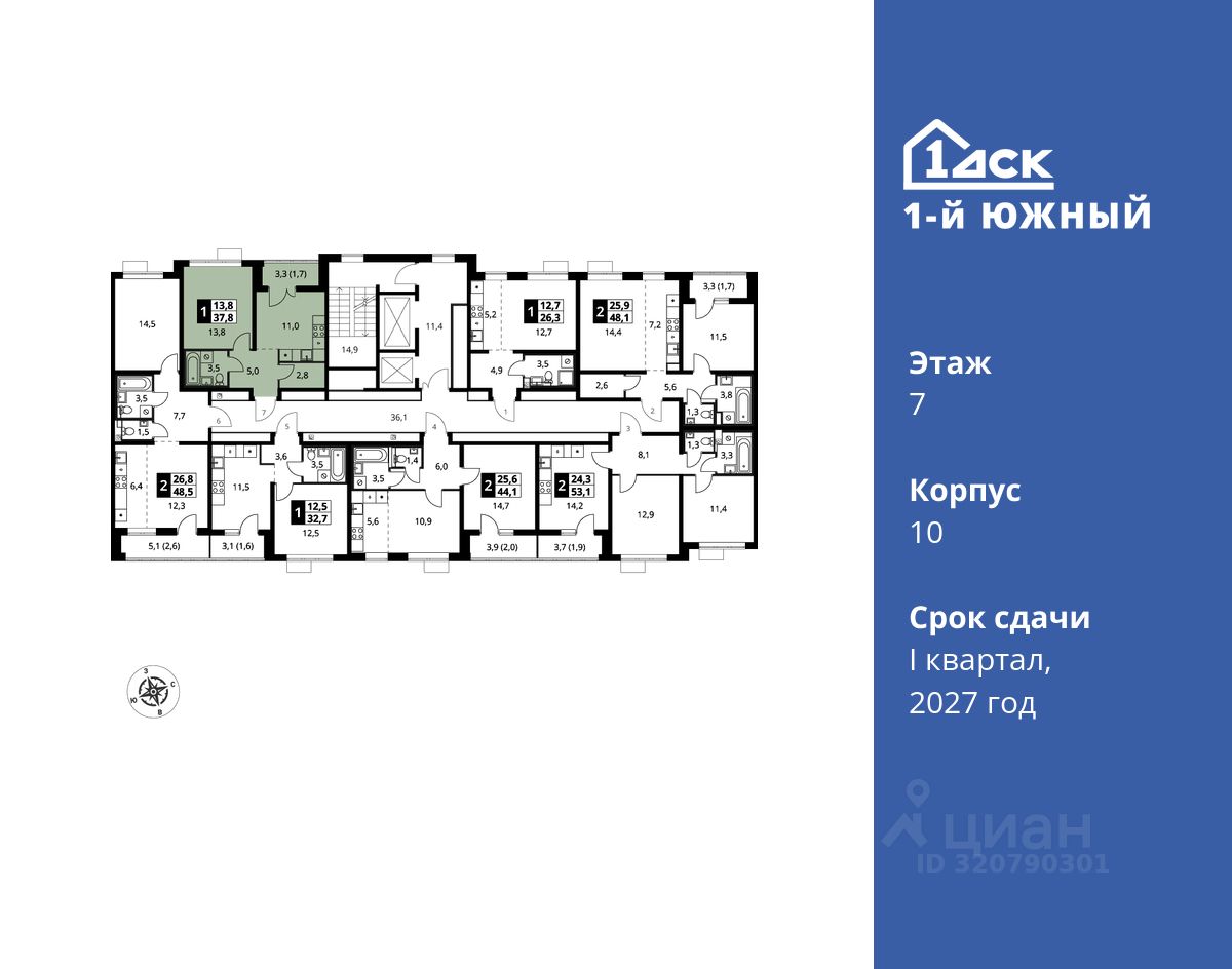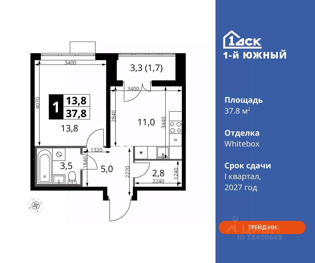 продам 1-к, Первый Южный ЖК, 108 860 055 ₽