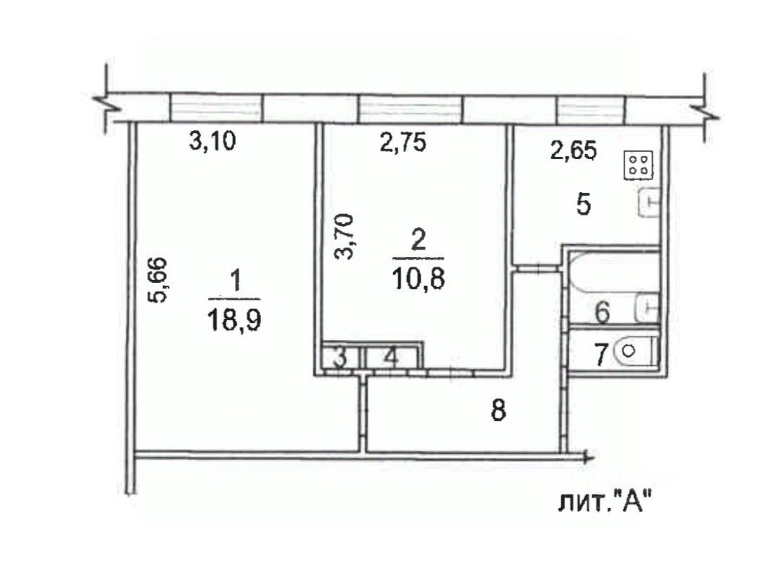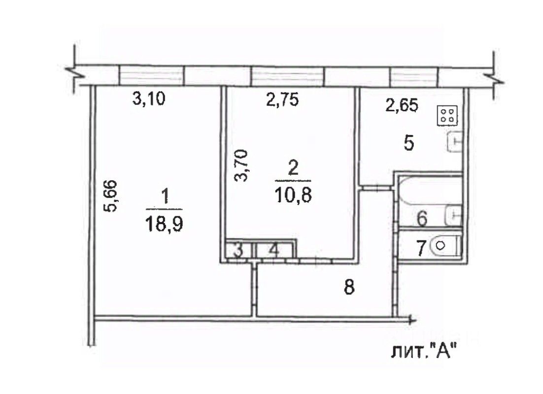 Общая площадь44,7 м2