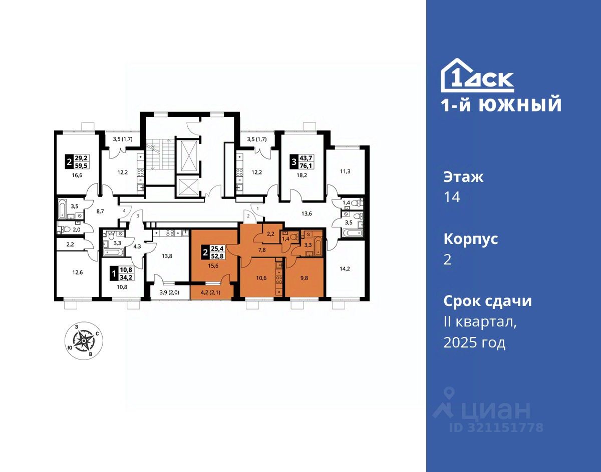 Максимальные скидки при 100% оплате. Trade-in вместо первоначального взноса - выгодно обменяйте вашу квартиру на новую! Корпус сдан! Прямая продажа от застройщика! Жилой Комплекс класса Комфорт плюс. Продаётся 2-к квартира номер 280 в сданном корпусе общей площадью 52.8 кв.м на 14-м этаже 25 этажного дома.