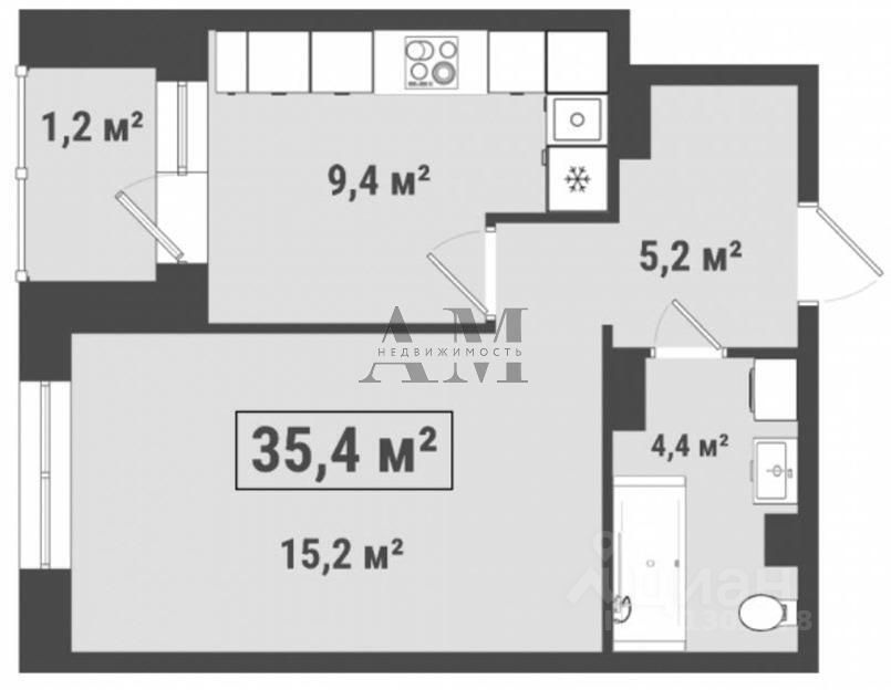 Общая площадь квартиры составляет 34,5 кв метра, что позволяет оптимально использовать пространство: просторная комната площадбю почти 16 кв метров, позволяет зонировать пространство по вашему вкусу!