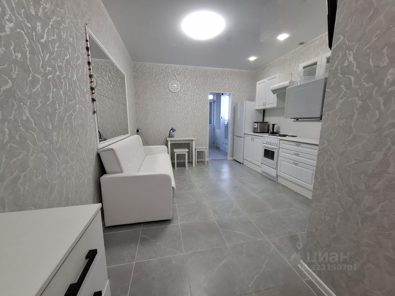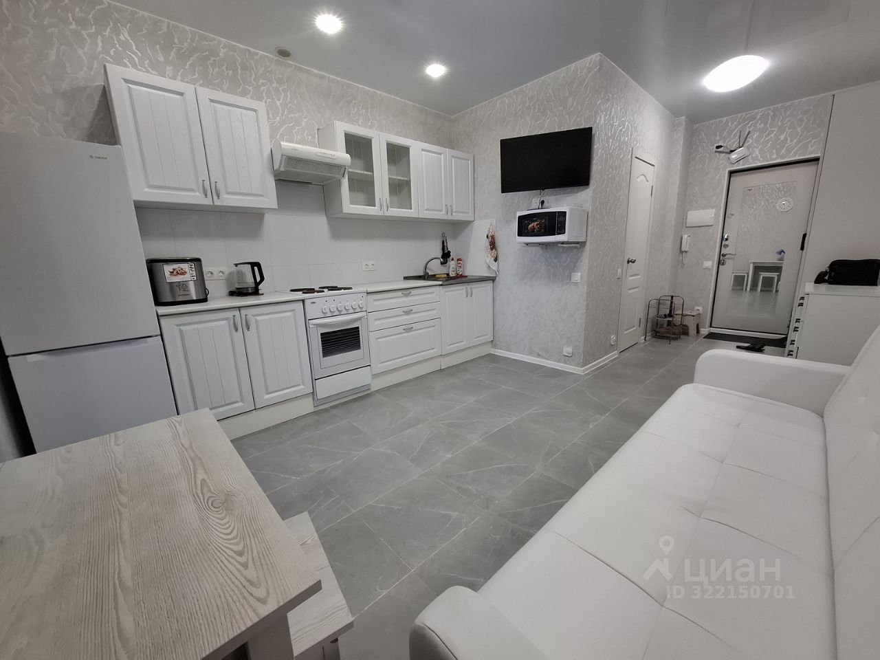 Впервые сдается квартира-студия с изолированной спальной комнатой. Полностью укомплектована мебелью (кухонный гарнитур, диван, полутороспальная кровать, шкафы, стол) и бытовой техникой (холодильник, стиральная машина, эл.плита с духовым шкафом, КОНДИЦИОНЕР, хлебопечь, СВЧ, ТВ, чайник). Застекленая лоджия. Рядом есть магазины, пункты выдачи, рынок, школа, детские сады. Оперативный показ.