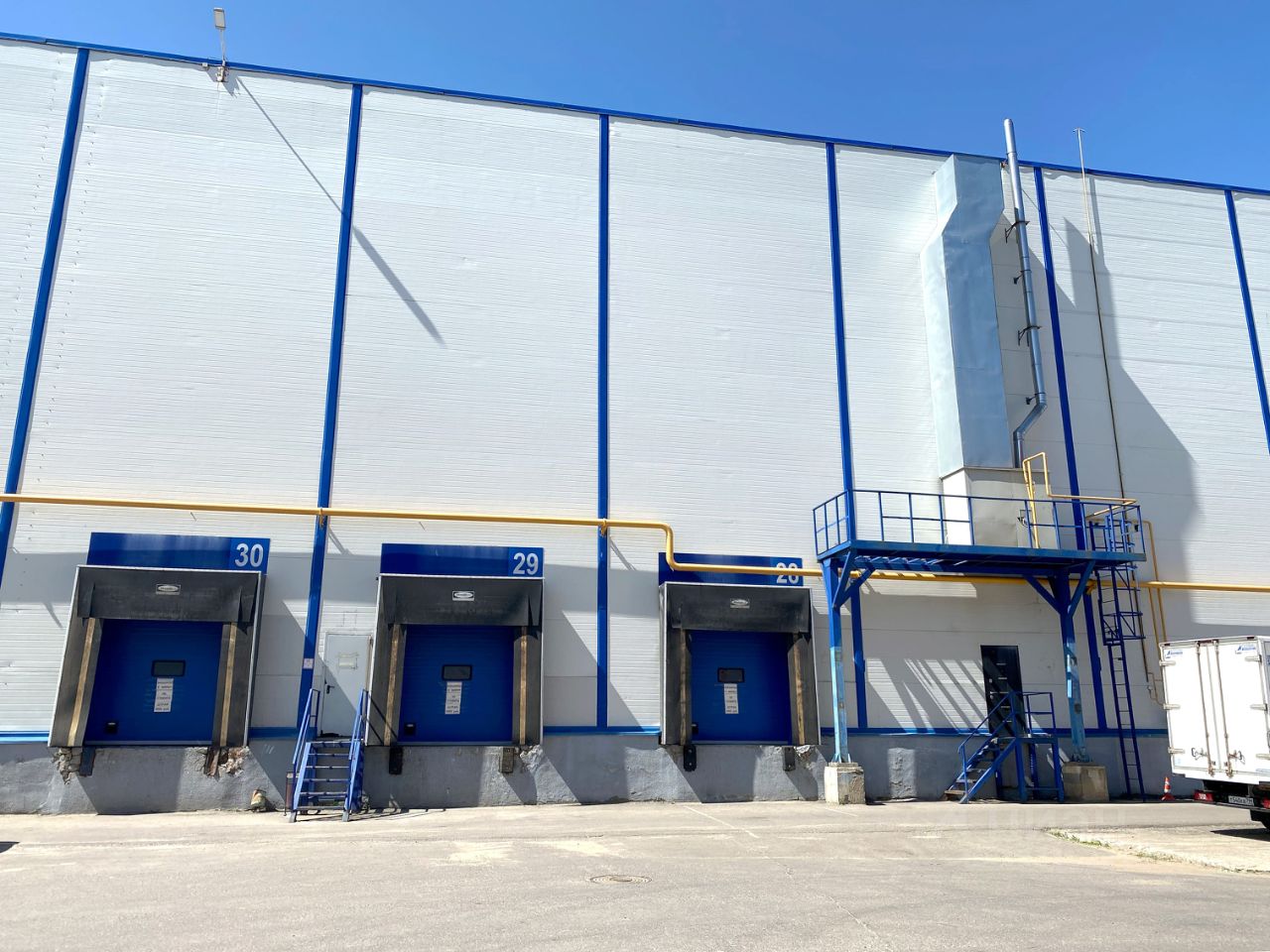 Склад состоит из свободной площади с высотой потолка 12 метров. Полы — покрытие антипыль. Нагрузка на пол 7 тонн. Имеются доковые ворота с регулируемыми рампами. Склад оснащён сплинклерной системой пожаротушения.