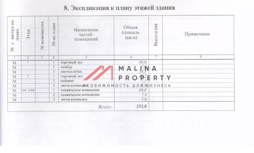 Помещение 253,8 м2, располагается в трехэтажном здании, открытая планировка, отдельный вход с фасада, высота потолка 3 м, витринные окна по фасаду. Электрическая мощность 40 кВт. Парковка перед фасадом. Место для размещения рекламы.