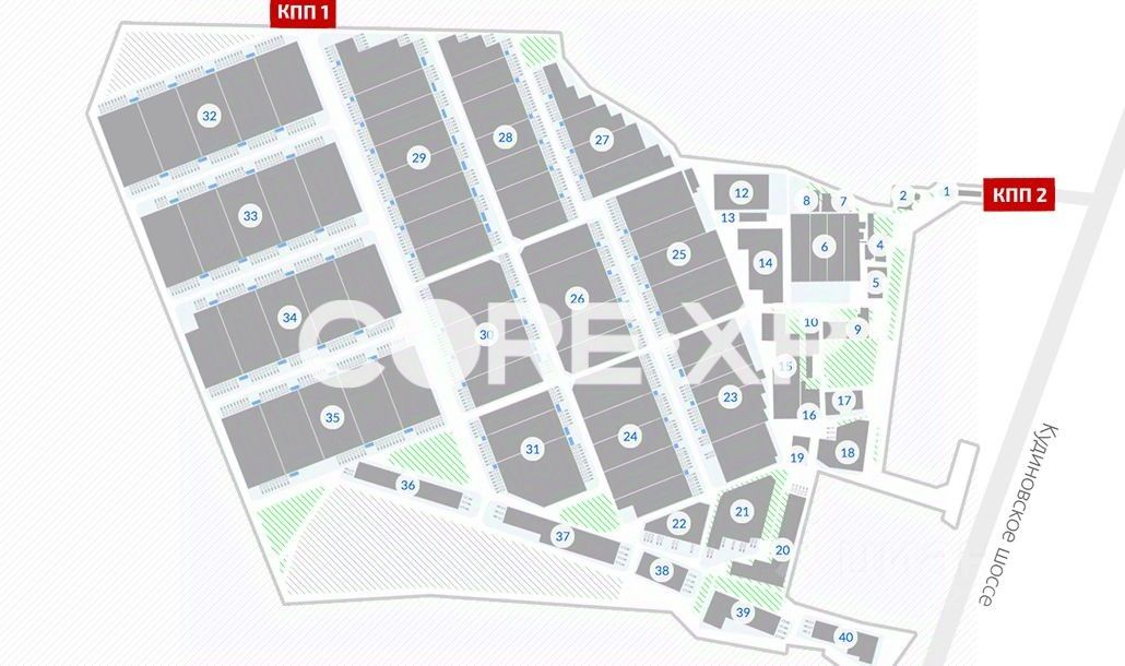 ОСНОВНЫЕ ХАРАКТЕРИСТИКИ - Площадь: 4422 кв.м - Температура: Сухой - Шаг колонн: 12 x 24 - Погрузочные ворота: 1 док на м²: 1000 - Возможность высотного хранения - Тип пола: Бетонный пол с антипылевым покрытием